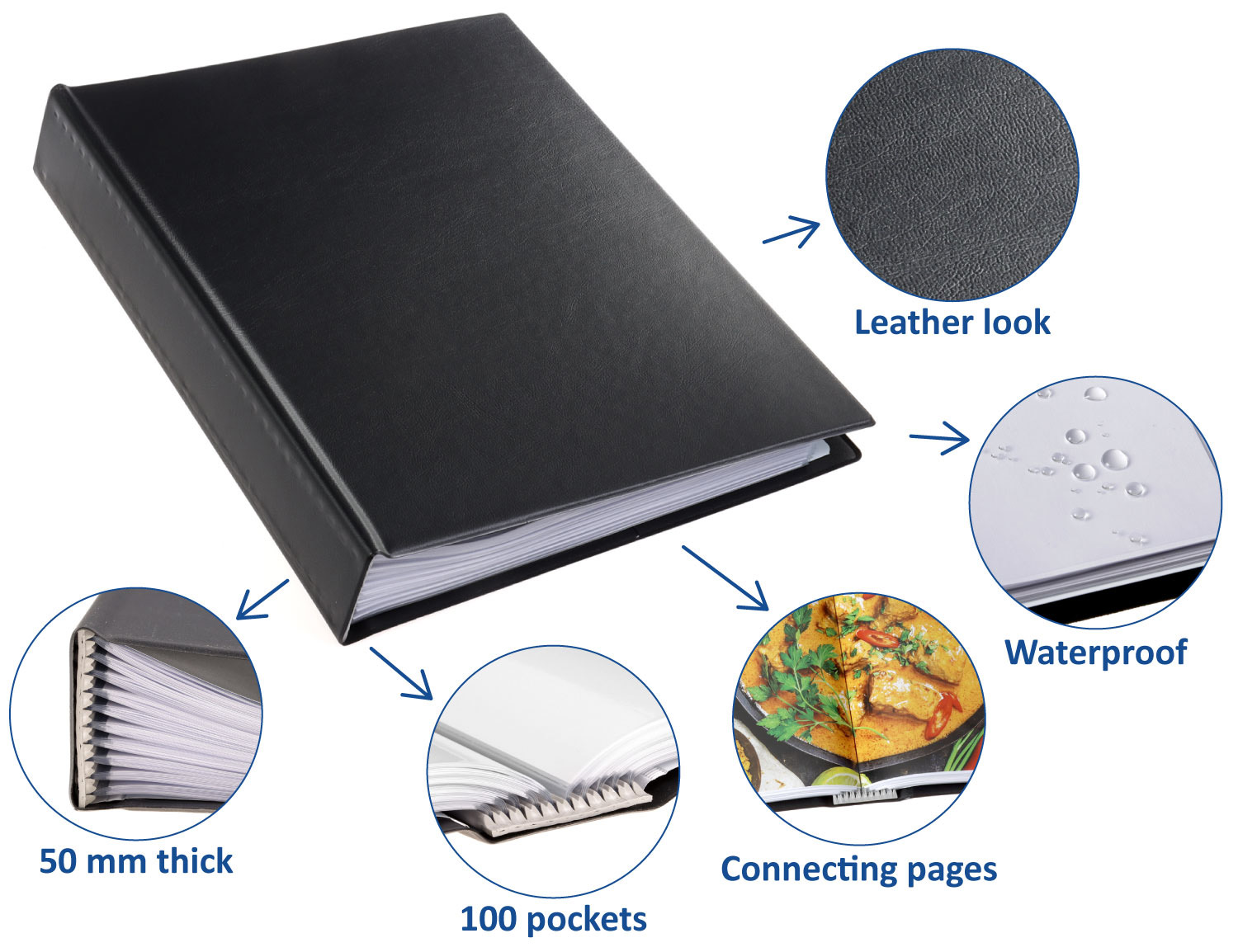 Protège-documents Rillstab A4 original en matière plastique grainée. A l'intérieur, se trouve le mécanisme Rillstab, avec 100 pochettes internes = 200 x format A4 en polypropylène sans acide. Les poches internes sont en matériau polypropylène, transparent, antireflet, épaisseur 50 mu. A droite intérieur insert vertical sur toute la hauteur. Couleur noir. Gain de place et de poids par rapport aux autres cartes de présentation et classeurs à anneaux. Les pages se tournent comme un livre.