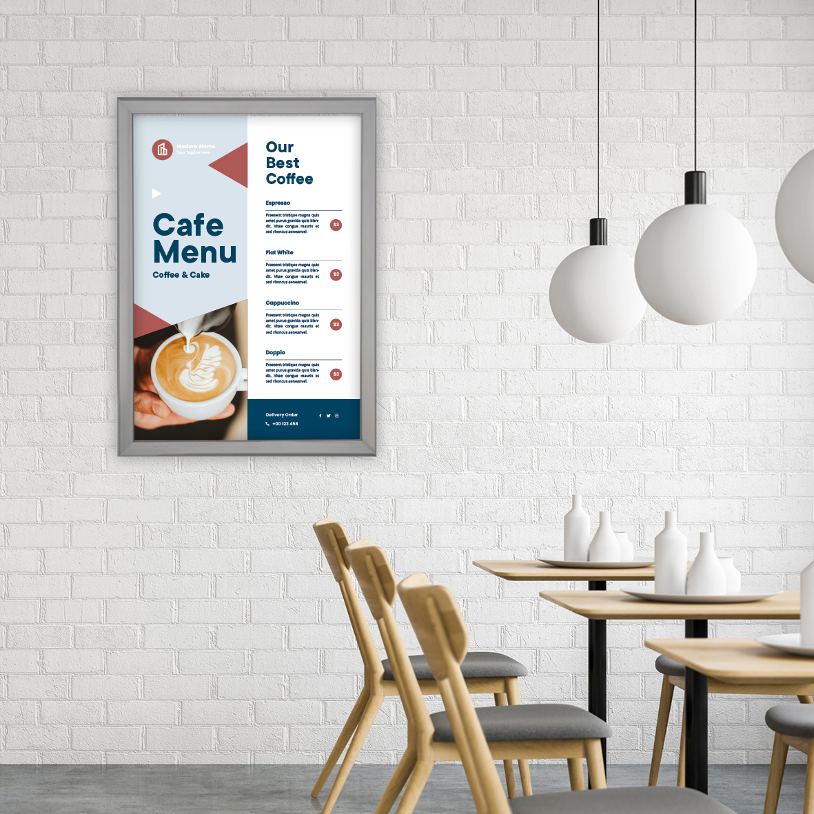 Porte-affiche clipsable Europel A3 20mm Porte-affiche de haute qualité avec système Easy-Click pour une présentation simple, rapide et représentative. En aluminium anodisé avec dos en plastique. Le film transparent antireflet (PET) protège le poster contre la poussière et l'humidité. Profil de 20mm avec coins renforcés. Livré avec matériel de fixation. Convient au format A3.