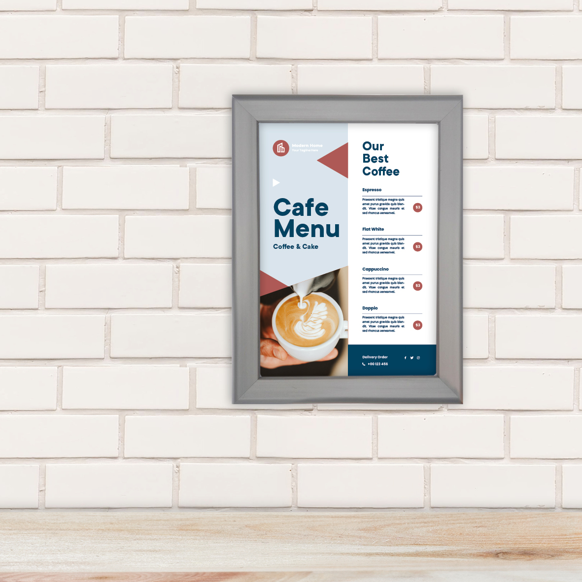 Porte-affiche clipsable Europel A5 20mm Porte-affiche de haute qualité avec système Easy-Click pour une présentation simple, rapide et représentative. En aluminium anodisé avec dos en plastique. Le film transparent antireflet (PET) protège le poster contre la poussière et l'humidité. Profil de 20mm avec coins renforcés. Livré avec matériel de fixation. Convient au format A5.
