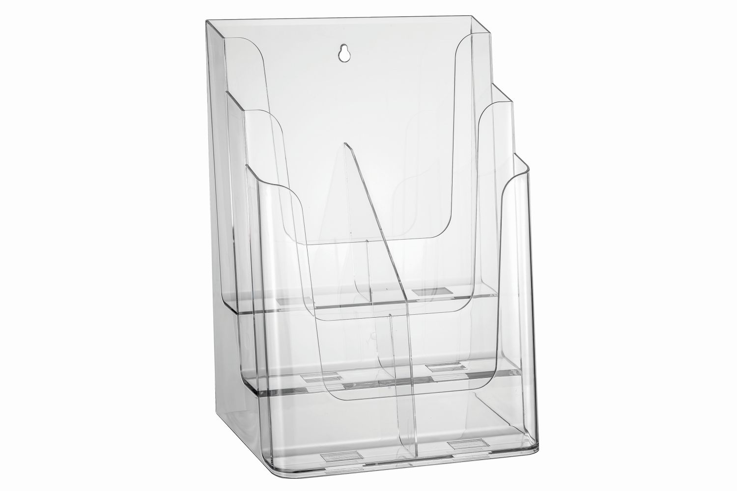 Porte Prospectus Europel 6x 1/3 A4 *Porte-brochure transparent en polystyrène recyclable. * Plusieurs compartiments pour 6 x 1/3 A4 portrait. * Convient également pour un montage mural. * Dimensions intérieures 228x220x35 mm. * Dimensions extérieures 232x320x150 mm (lxHxP). * Profondeur de remplissage 35mm.