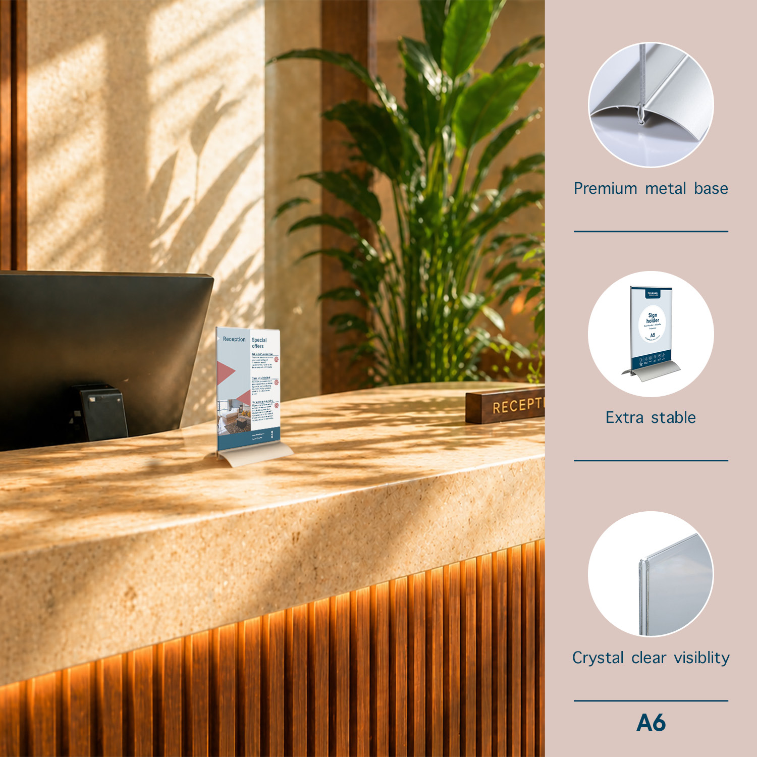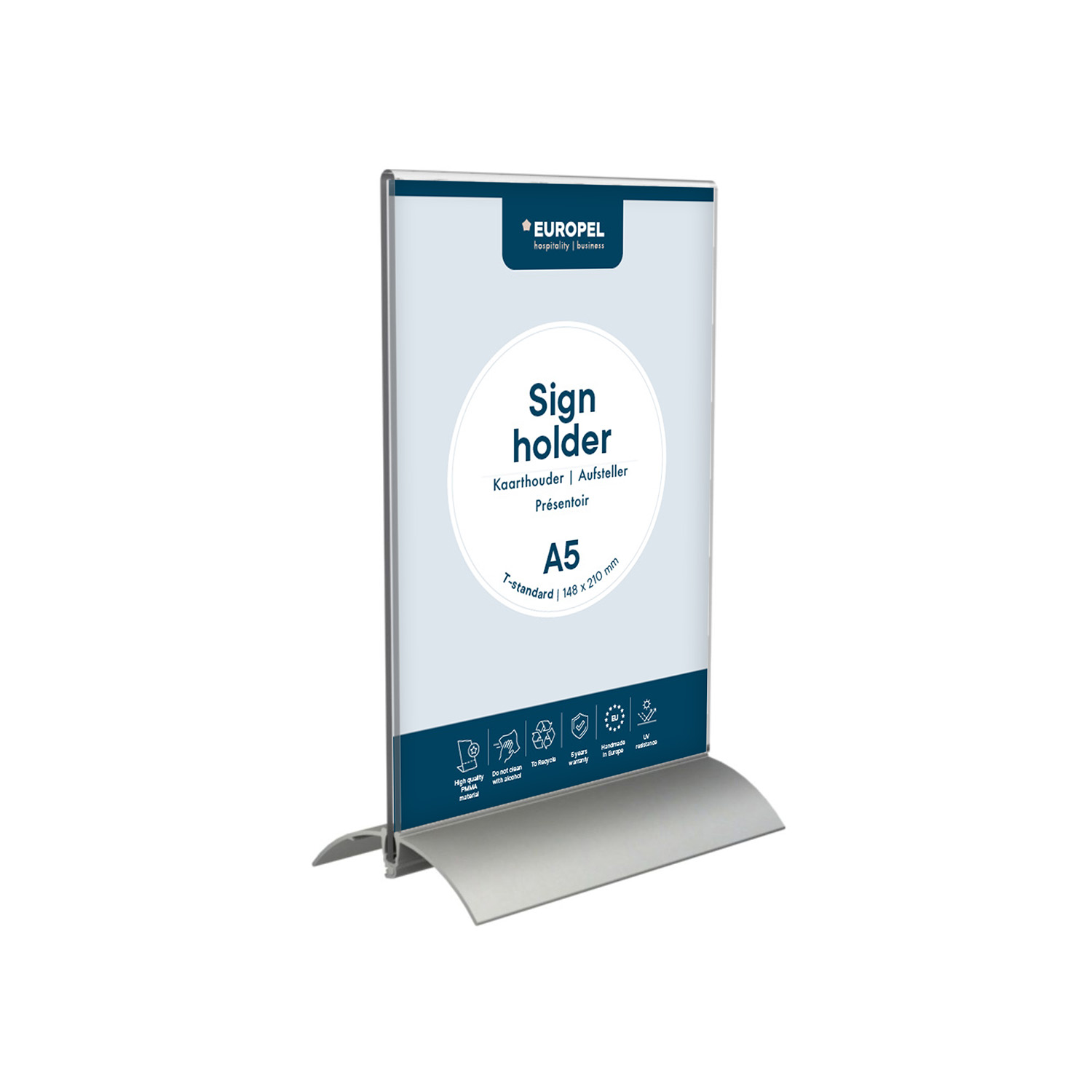 Europel Présentoir de Table T-standard A5 Portrait Acrylique/Aluminium