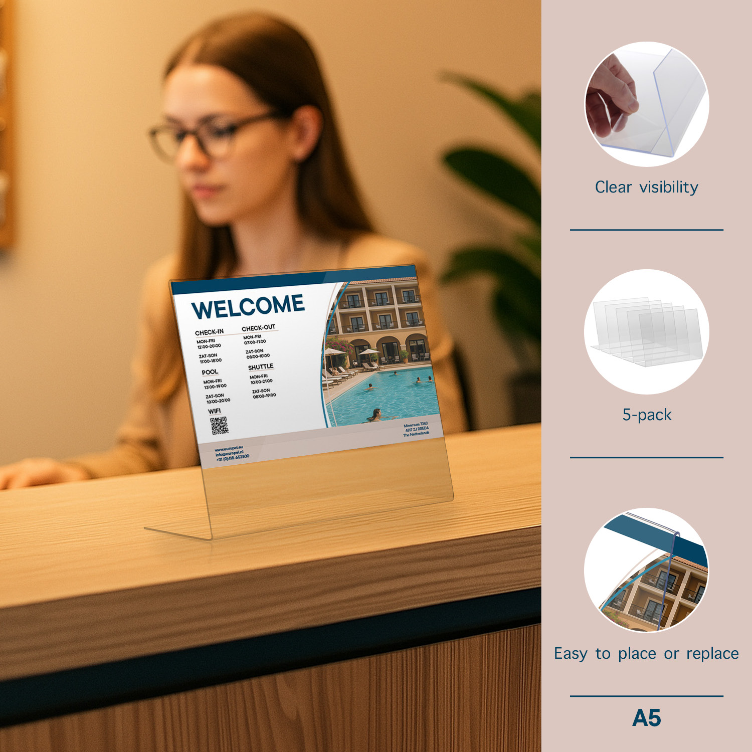 Europel Porte-Cartes Budget L-Stand A5 1,5 mm Horizontal Acrylique – Lot de 5