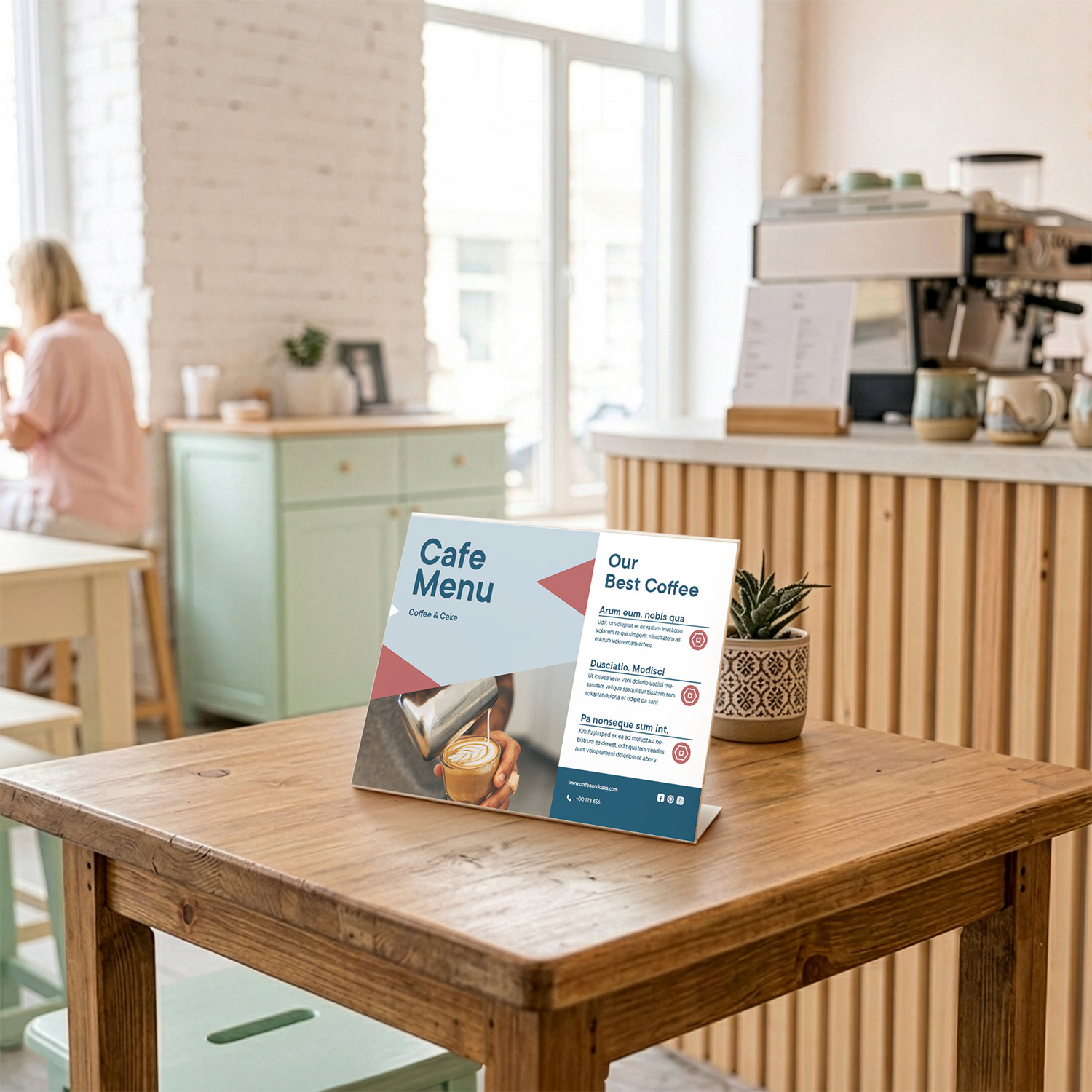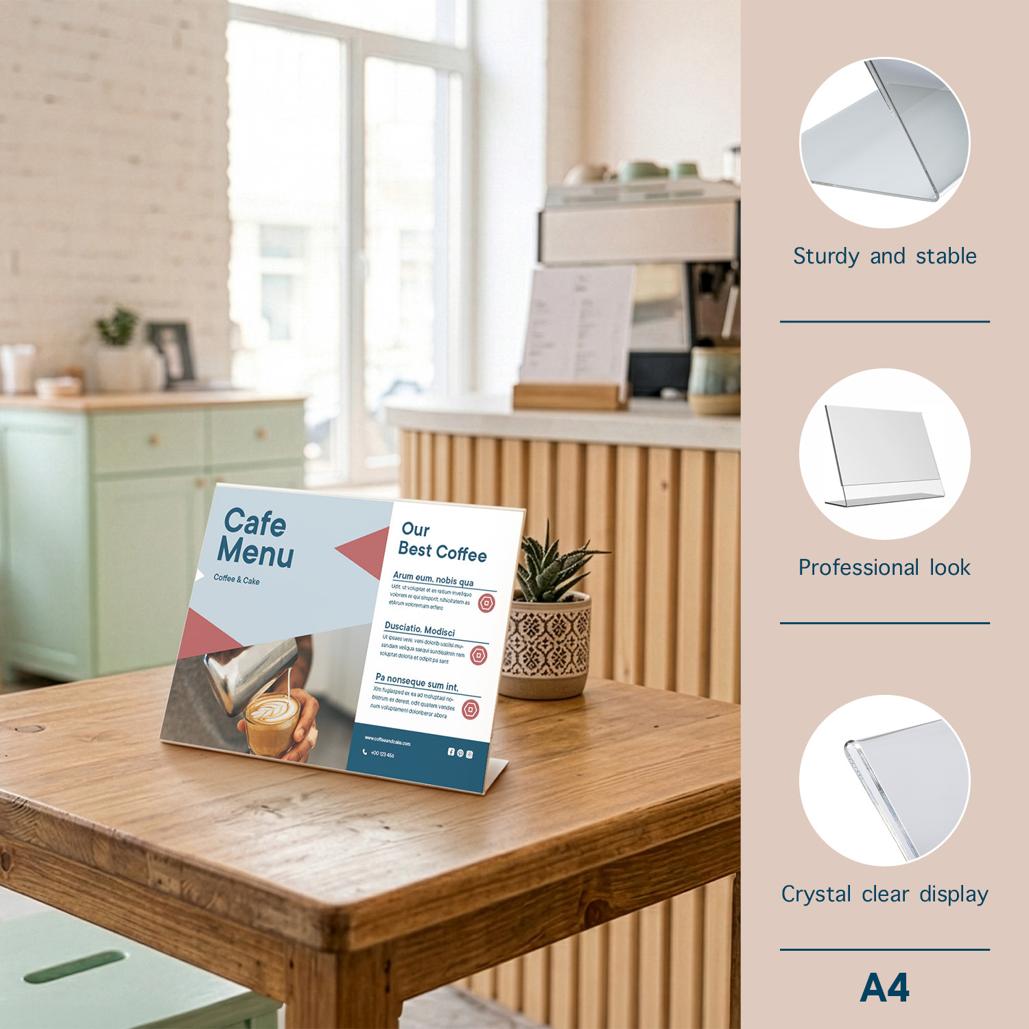 *Porte-brochures pour une présentation représentative des brochures et des cartes de prix.*L-standard. * Acrylique transparent de haute qualité. *Convient au format de papier paysage A4.