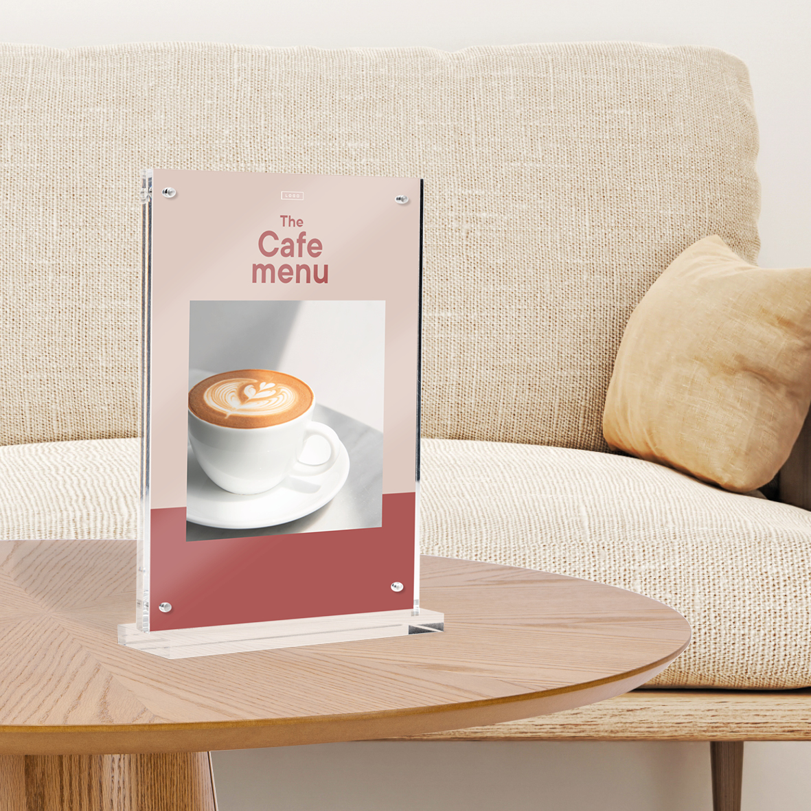 Porte-menu de luxe en acrylique avec aimants et base solide pour une présentation représentative sur les deux faces. Convient au format A5. Epaisseur: 10mm