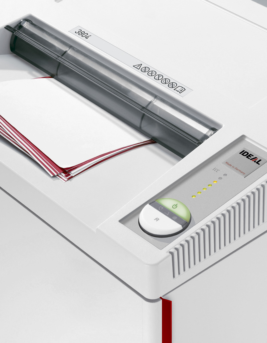 Destructeur de bureau à prix attractif adapté aux grands formats. Avec ECC – Électronique de Contrôle de Capacité et grand volume de réception. SPS (Système de Protection et de Sécurité) : volet de sécurité breveté contrôlé électroniquement au niveau de l’ouverture ; commande électronique multi-fonctions EASY-SWITCH avec guidage de l’utilisateur grâce à des codes couleurs et des symboles lumineux ; retour automatique et arrêt pour éviter des surépaisseurs ; arrêt automatique en cas de réceptacle plein ; protection électronique de la porte par contact magnétique ; double protection thermique du moteur ; mode zéro énergie : après 15 minutes de veille, le destructeur s‘éteint complètement. Ouverture de 400 mm, adaptée aux grands formats et listings informatiques. Marche / arrêt automatiques par cellule. ECC (Électronique de Contrôle de Capacité) : système breveté indiquant la capacité utilisée lors de la destruction. Garantie à vie sur les cylindres de coupe de qualité supérieure, acceptant agrafes et trombones. Modèles coupe fibres et coupe croisée 4 x 40 mm adaptés à la destruction des CD/ DVDs les plus courants. Moteur monophasé 640 Watts silencieux et particulièrement puissant pour un fonctionnement en continu. Système de transmission robuste et hermétique, avec double entraînement. Meuble en bois 210 l. de grande qualité monté sur roulettes. Réceptacle 165 l. pratique et respectueux de l’environnement (pas de sac plastique jetable nécessaire). Modèle : 6 mm coupe fibres. Dimensions: 970 x 640 x 590 mm (H x B x D). Couleur "cool grey". Gewicht: 79 kg. DIN 66399 Sécurité niveau P2. Capacité feuilles papier A4 70g/m² 25-28 feuilles. 80 g/m² 21-24 feuilles.