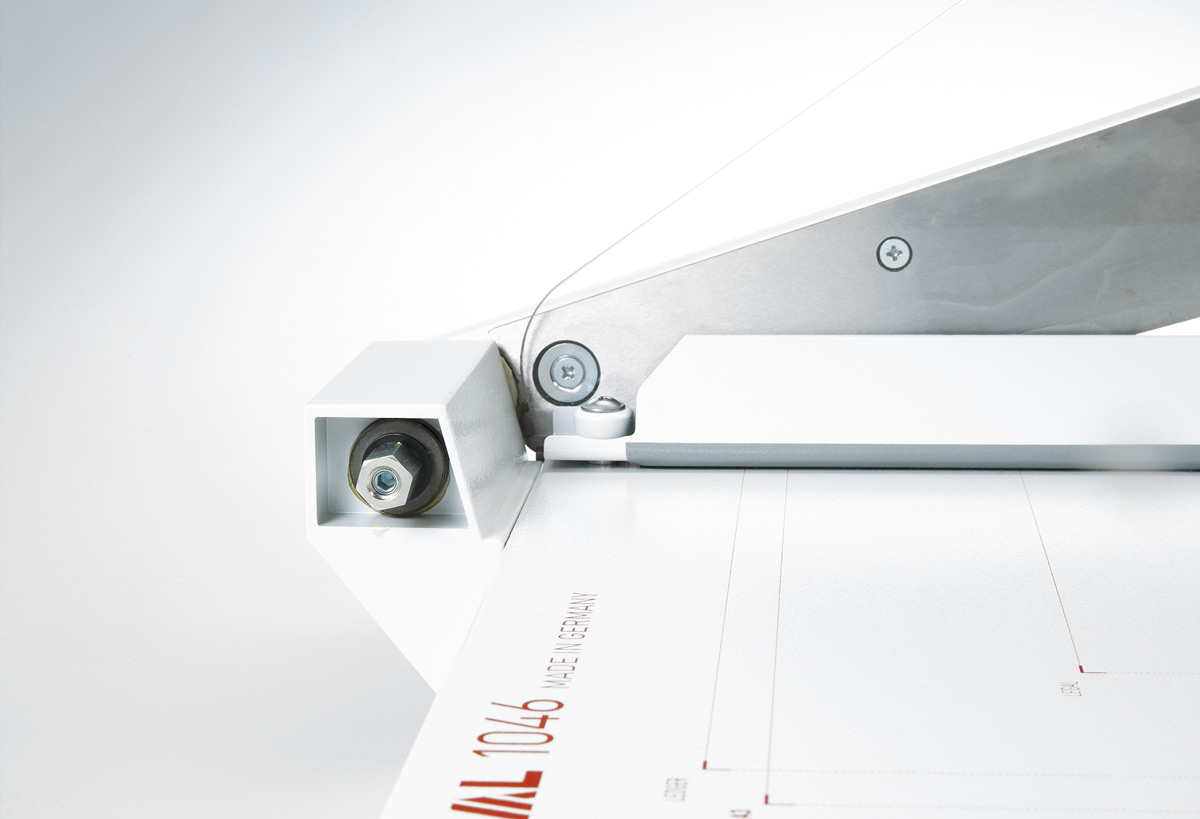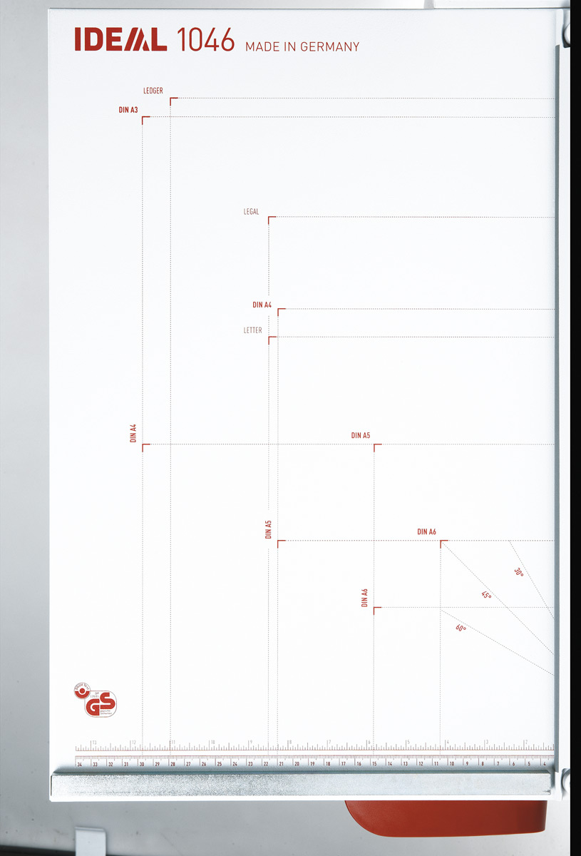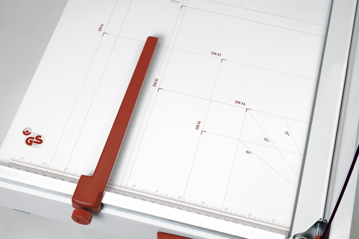 Cisaille de bureau innovante pour A3 plus avec pression automatique et EASY-LIFT. Dispositif de pression automatique pour une coupe pratique et précise. L‘innovation EASY-LIFT : levier relevant le système de pression pour une extraction facile du document sans avoir à remonter la lame. Grande table de coupe robuste, entièrement métallique. Lame et contre-lame réaffûtables de grande qualité, en acier de “Solingen”. Support axe de lame solide en fonte d’aluminium, et axe de lame guidé par deux paliers pour une coupe précise. Dispositif de protection transparent intégré à la ligne de coupe qui permet d’aligner avec exactitude les documents à couper. Butée latérale précise en métal et butée arrière coulissante. Affichage des mesures en mm/pouces. Tracé des formats DIN (A6 à A3), tailles de papier Americain et autres angles sont affichés sur la table. Pieds anti-dérapants pour une coupe plus sûre. Design attractif et pratique. Produit de qualité ”Made in Germany“. Tests de sécurité éffectués par laboratoires indépendants. Données techniques: Longueur de coupe 460 mm. Capacité de coupe 30 feuilles (papier 70 g/m²). Dimensions table L 356 x P 510 mm. Tracé A3 - A6 et des formats tailles de papier Americain. Dimensions H 385 x L 390 x P 700 mm. Poids 7,5 kg.