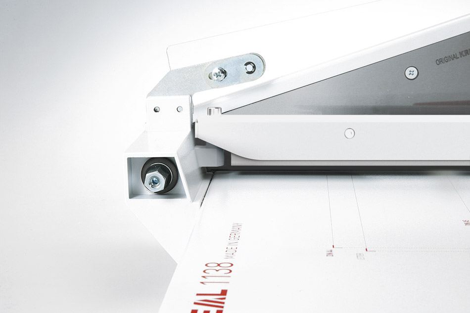Lame et contre-lame réaffûtables de grande qualité, en acier de Solingen. Dispositif de pression manuel, dosable par levier. Butée latérale graduée, avec affichage des mesures en mm/pouces. Butée arrière coulissante. Tracé des formats DIN (A6 à A4)