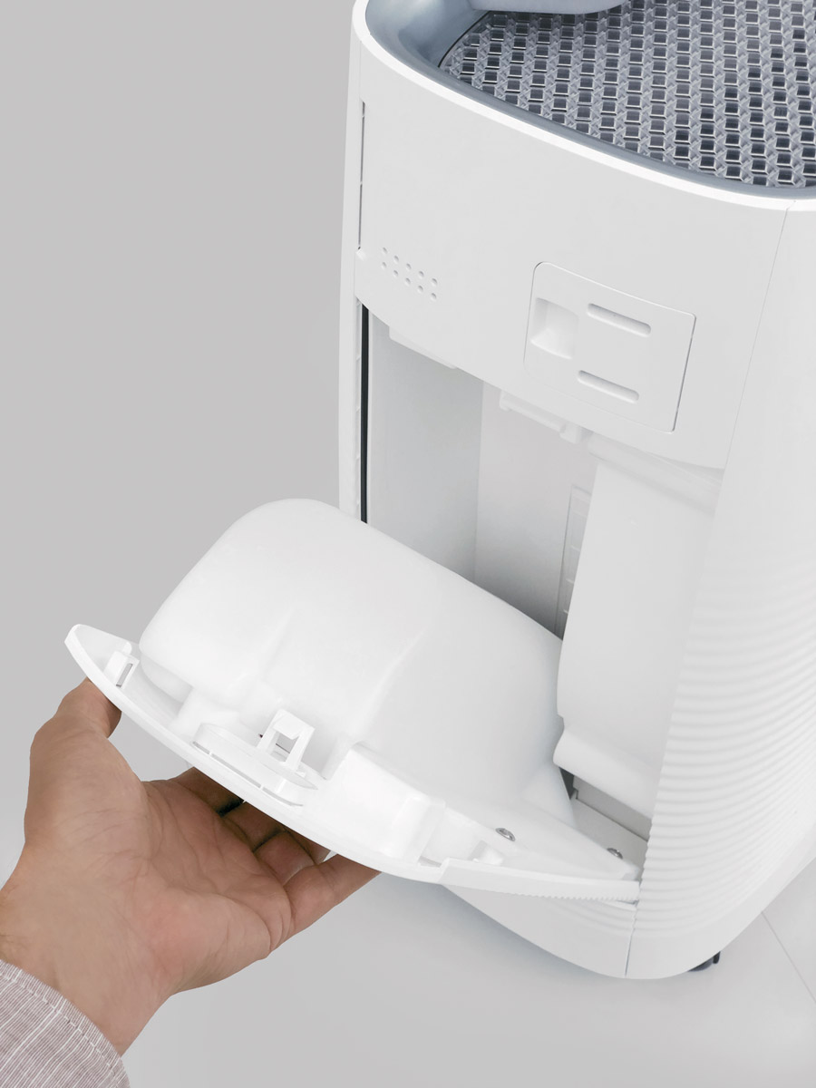 Combiné 2 en 1 pour purifier et humidifier l’air ambiant dans des pièces de 25 à 45 m2 Avec une hauteur sous plafond de 2,50 m). Équipé d’un filtre HEPA et d’un filtre anti-odeurs. L’AP35 H garantit une atmosphère saine tout au long de l’année ; en filtrant les particu- les fines, il assure non seulement un air épuré mais aussi un taux d’humidité idéal (grâce à l’évaporation à froid). Le système combine un humidificateur et un purificateur d’air dans un seul appareil. Les filtres multicouches capturent et filtrent les polluants de l’air ambiant tels que la poussière, les particules fines (PM10, PM2.5 et plus petites), le pollen et les allergènes, les agents pathogènes tels que les bactéries et les spores de moisissures, la fumée de cigarette, les gaz d’échappement et les odeurs. Tout cela fonctionne grâce à une faible consommation d’énergie et à un faible niveau sonore. Sur le tableau de commande, en mode automatique l’AP35 H surveille en continu l’humidité et la qualité de l’air au moyen de capteurs et ajuste automatiquement les capacités de purification et d’évaporation de l’air ambiant. Le réglage manuel est possible. La qualité de l’air ambiant est affichée et surveillée en permanence par un éclairage LED commutable. Affichage à l’écran en temps réel des valeurs d’air purifié et du niveau d’humidité. Le réservoir d’eau amovible de 2.5 litres et sa poignée facilitent son remplissage. Un voyant lumineux indique la nécessité de remplacer le filtre - en moyenne le changement se fait une fois l’an, et en fonction de son usage. Quatre roulettes pivotantes assurent la mobilité de l’AP35 H et permettent son usage dans des pièces appropriées. Caractéristiques techniques: Alimentation 220-240 V, 50 Hz. Vitesses de ventilation 6 niveaux. Puissance (watts) 4 - 25. Capacité d‘humidification 300 ml/h. Niveau sonore (dB) 26 - 52 (selon vitesse). Capacité de purification jusqu‘à 300 m³/h. Dimensions (H x L x P) 548 x 430 x 275 mm. Poids (kg) 9,5.