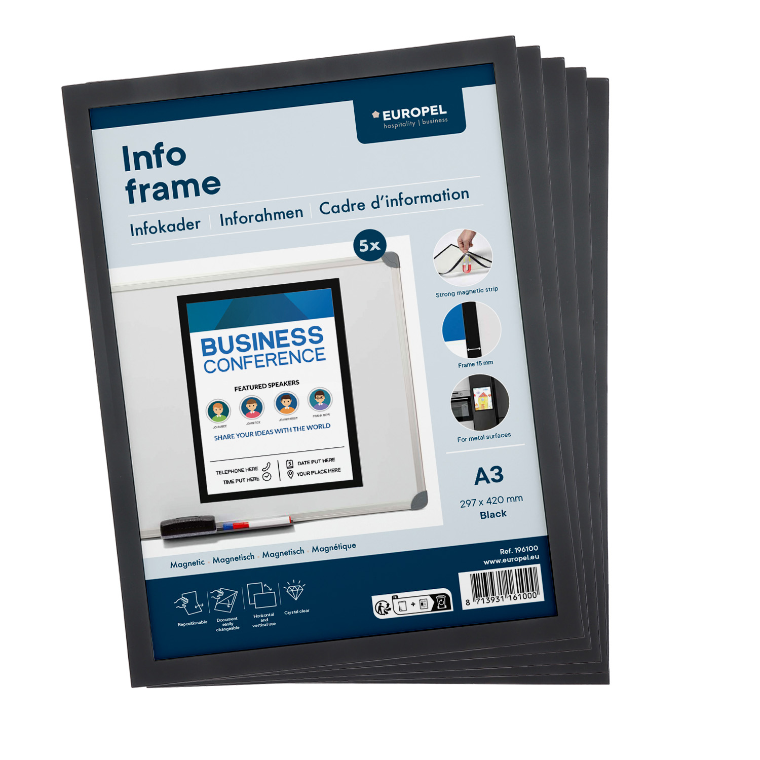 Europel Cadre d’information magnétique – Lot de 5 pcs – A3 Noir
