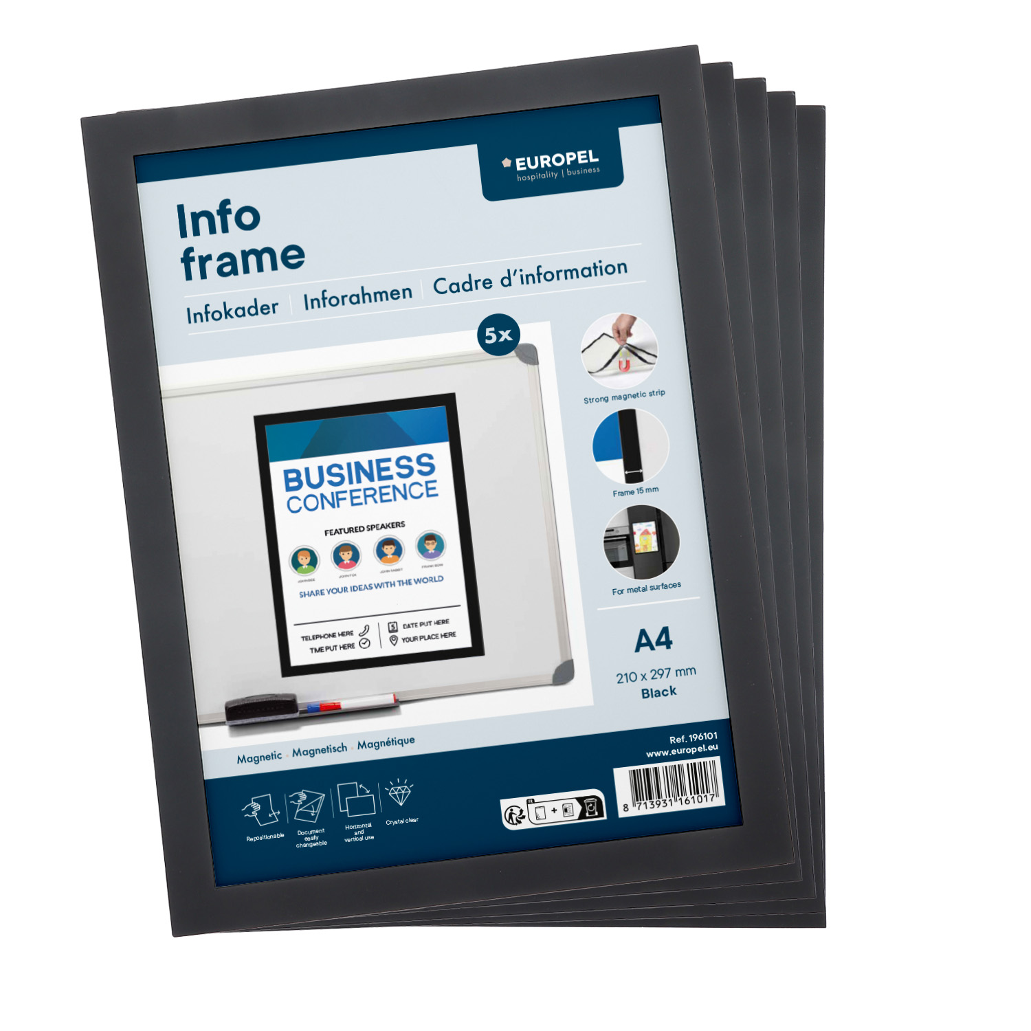 Europel Cadre d’information magnétique – Lot de 5 pcs – A4 Noir