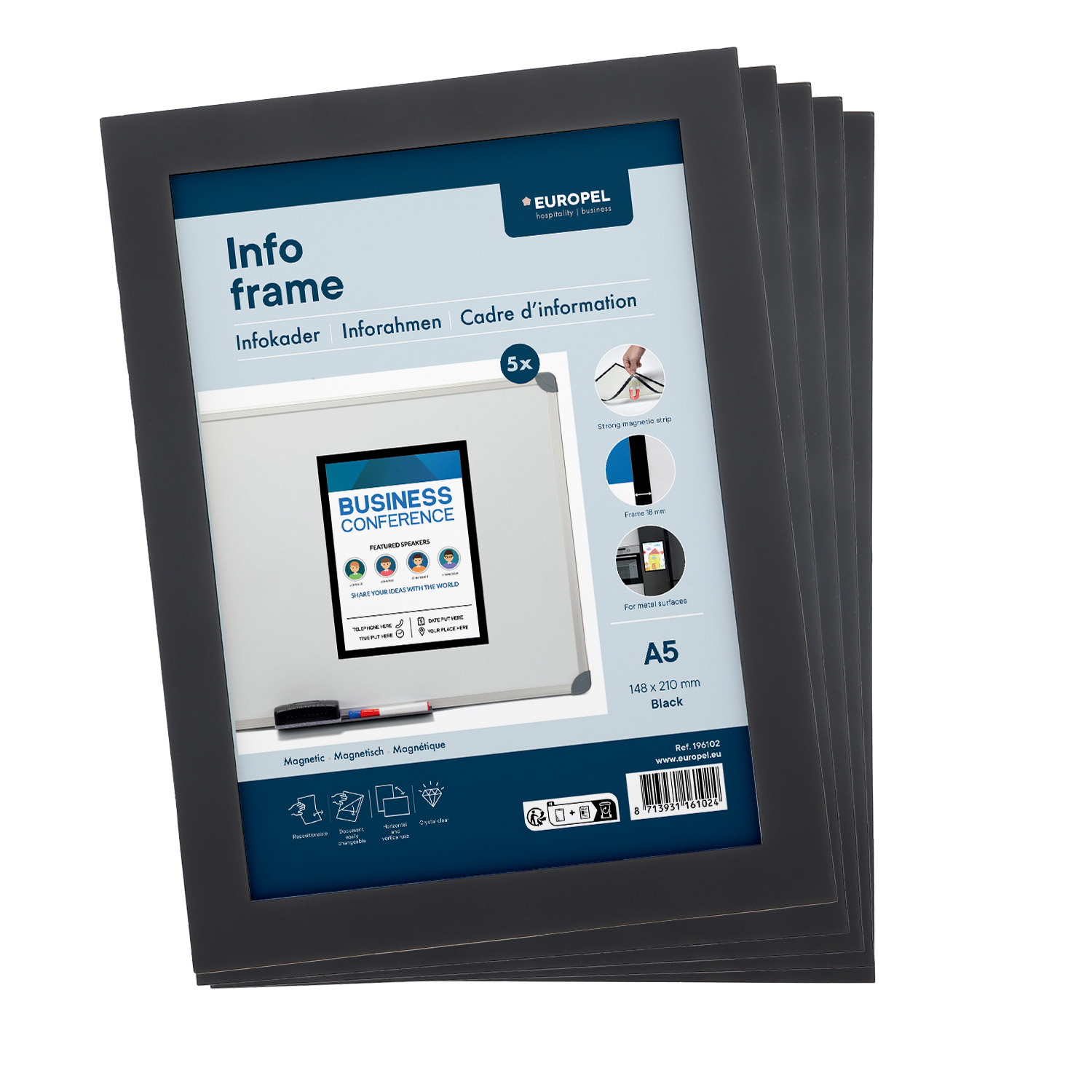 Europel Cadre d’information magnétique – Lot de 5 pcs – A5 Noir